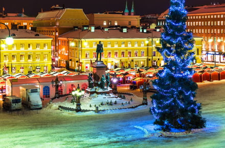 In uw huurauto duurt het slechts 30 minuten van het vliegveld naar het centrum van Helsinki, waar u een paar rondjes kunt rijden op de ijsbaan op het stationsplein. De ijsbaan is bijna de hele winter open. Schaatsen kunnen tegen betaling worden gehuurd, helmen zijn gratis. Wandel dan langs Aleksanterinkatu, de beroemdste winkelstraat van Helsinki, die een magische aantrekkingskracht heeft tijdens de kerstperiode.